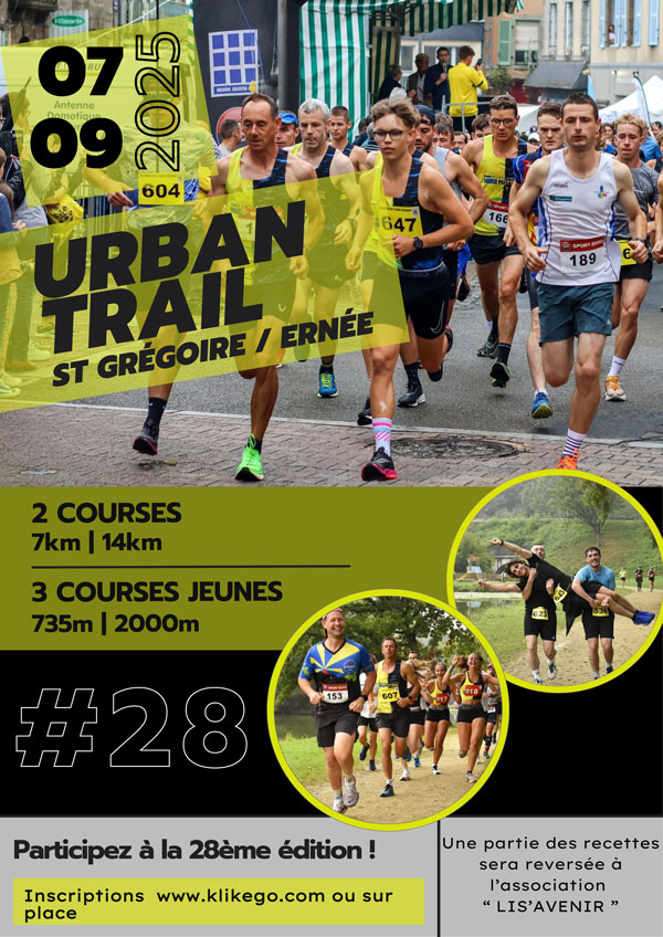 Vide grenier. Emplacement gratuit. Réservation : 06 31 20 82 91 - 9h15 – Trail urbain de la Saint-Grégoire