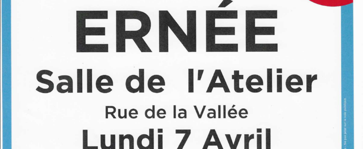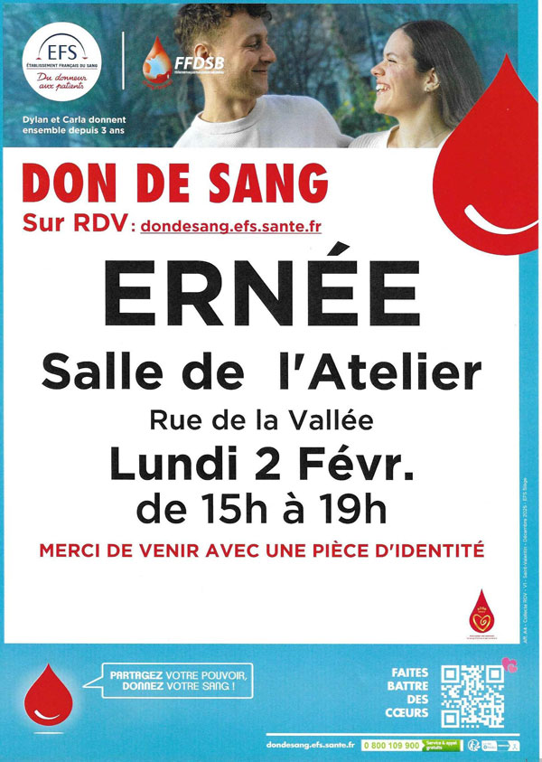 Organisé par l’ Association des Donneurs de Sang Bénévoles d’Ernée et ses environs (ADSB)