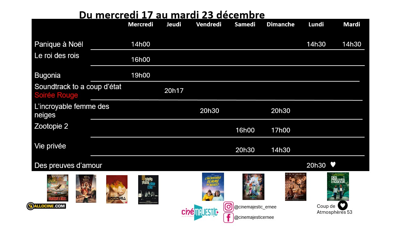 Accueil > Cinéma > La programmation du mercredi 17 au mardi 23 décembre 2025
