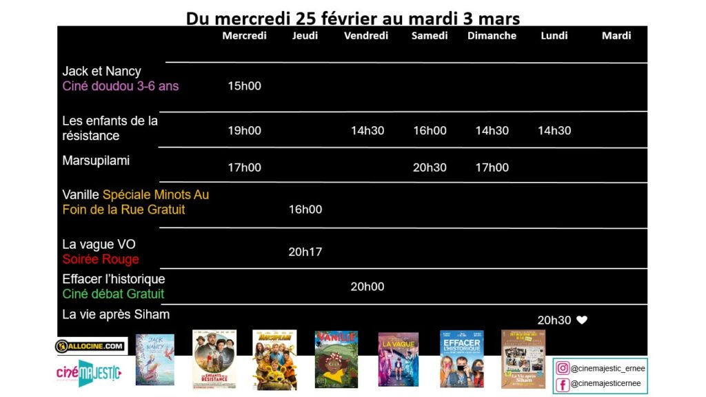 Accueil > Cinéma > La programmation du mercredi 25 février au mardi 3 mars 2026