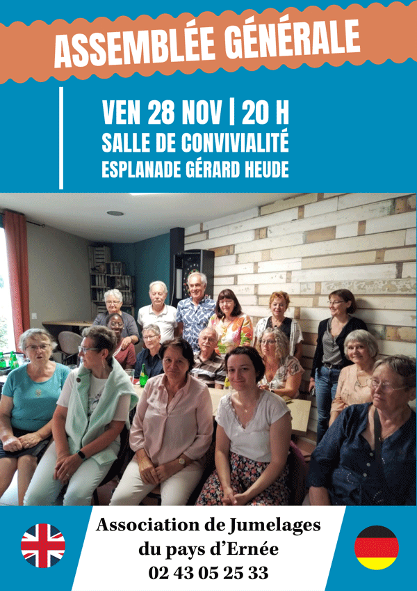 Jumelages du Pays d’Ernée : Assemblée Générale Vendredi 28 novembre 2025 20h, salle de Convivialité, Esplanade Gérard Heude (Pôle Omnisports) Partager :