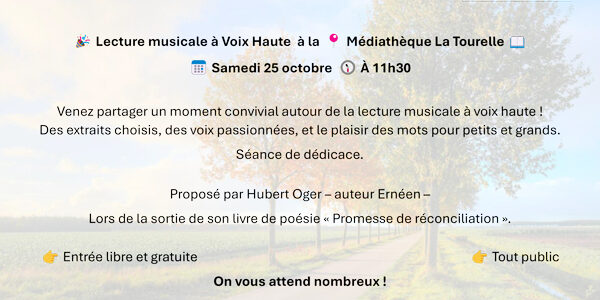 La Médiathèque La Tourelle vous invite à un moment convivial autour de la lecture musicale à voix haute.