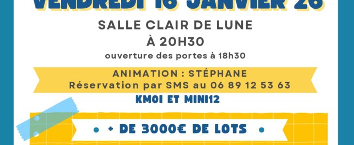 Loto du FSE Collège René Cassin Le FSE du Collège René Cassin à Ernée organise un loto géant le vendredi 16 janvier 2026 à 20h30 à la salle Clair de Lune. De nombreux lots surprises ! Venez nombreux ! Partager :