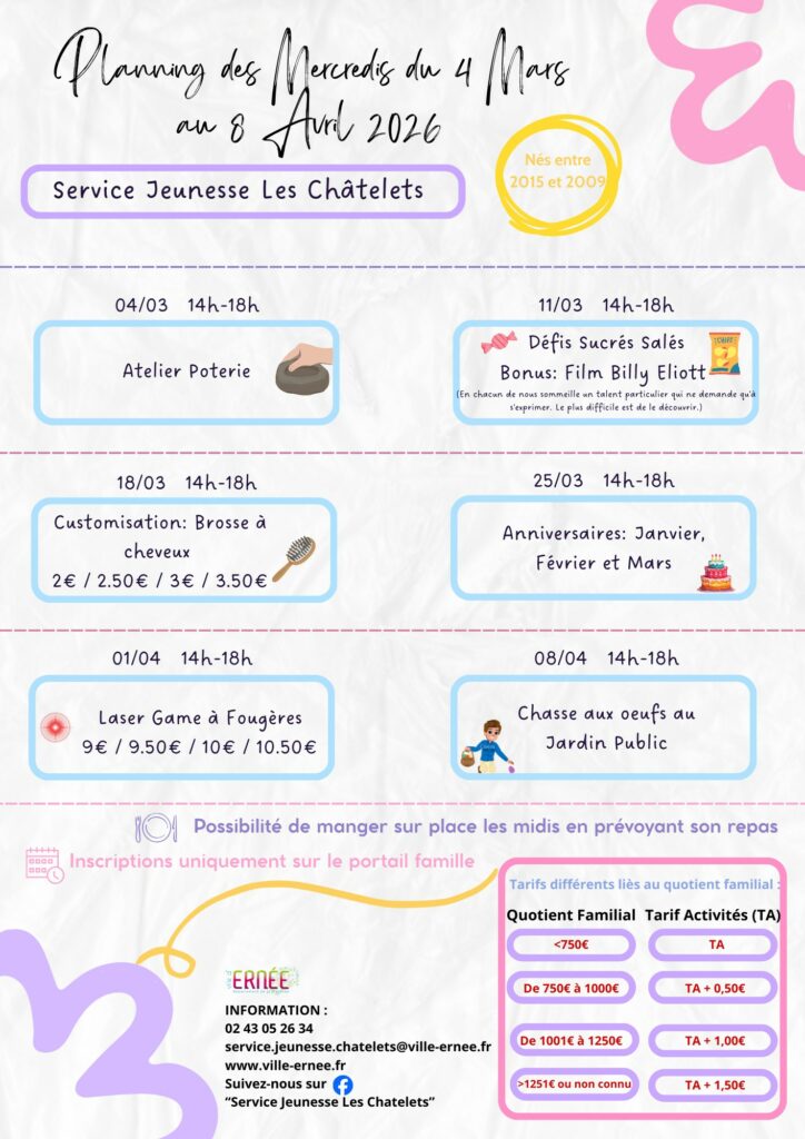 Vous avez la possibilité d’inscrire vos enfants en ligne pour l’accueil de loisirs des Bizeuls et des Châtelets, ainsi que le Cocktail Sports :