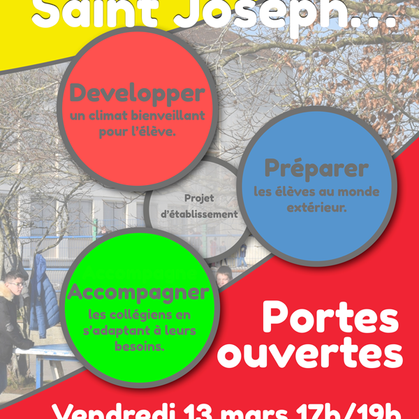 Le collège Saint Joseph ouvre ses portes le vendredi 13 mars de 17h à 19h et le samedi 14 mars de 9h à 12h.
