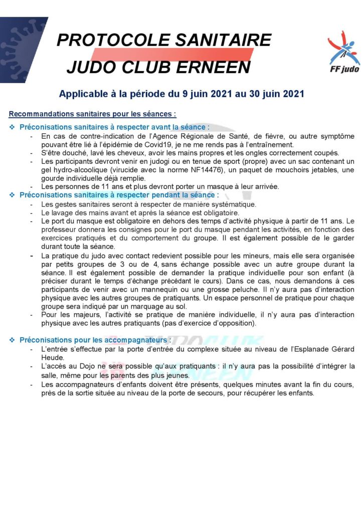 En raison du protocole sanitaire, seuls les pratiquants seront acceptés dans la salle pendant la séance.